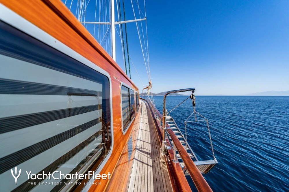 Kaptan Yilmaz 3 comfortably cruises at 11 knots, reaches a maximum speed of 13 knots. Her low draft of makes her primed for accessing shallow areas and cruising close to the shorelines.