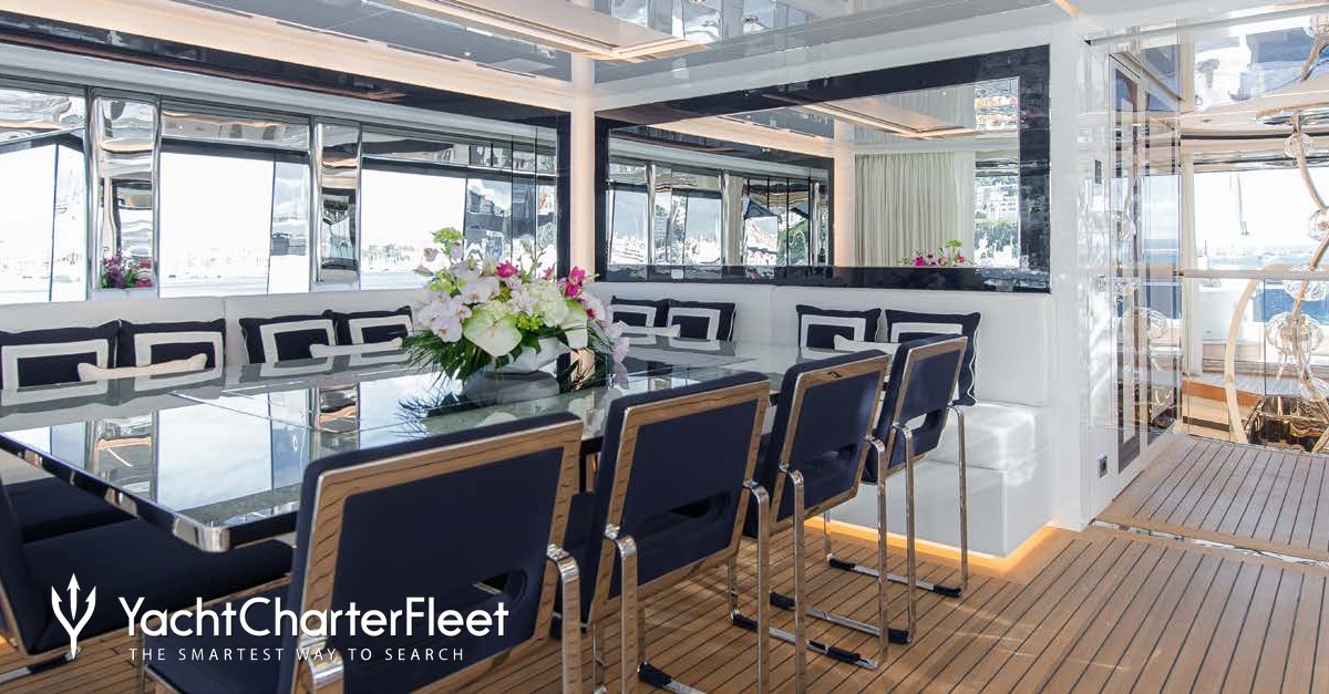 S5 has been designed to comfortably accommodate up to 12 guests in 8 suites comprising one VIP cabin and two cabins that can operate as twins or doubles. The supremely spacious full beam master suite incorporates its own study benefits from a his and her bathroom. She is also capable of carrying up to 17 crew onboard to ensure a relaxed luxury yacht experience.