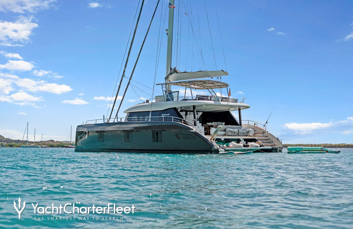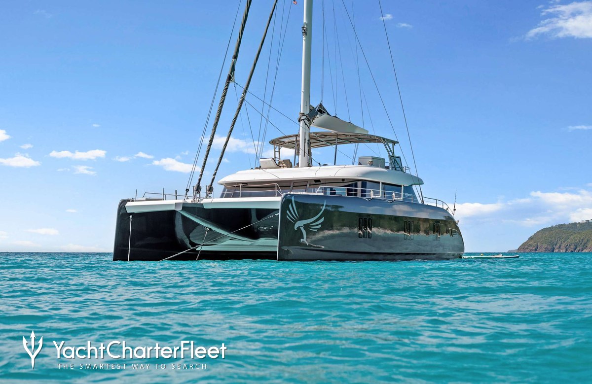 The 18.3m/60' 'Gyrfalcon' catamaran yacht built by the Polish shipyard Sunreef Yachts is available for charter for up to 10 guests in 5 cabins. This yacht features interior styling by Polish designer Sunreef Yachts.