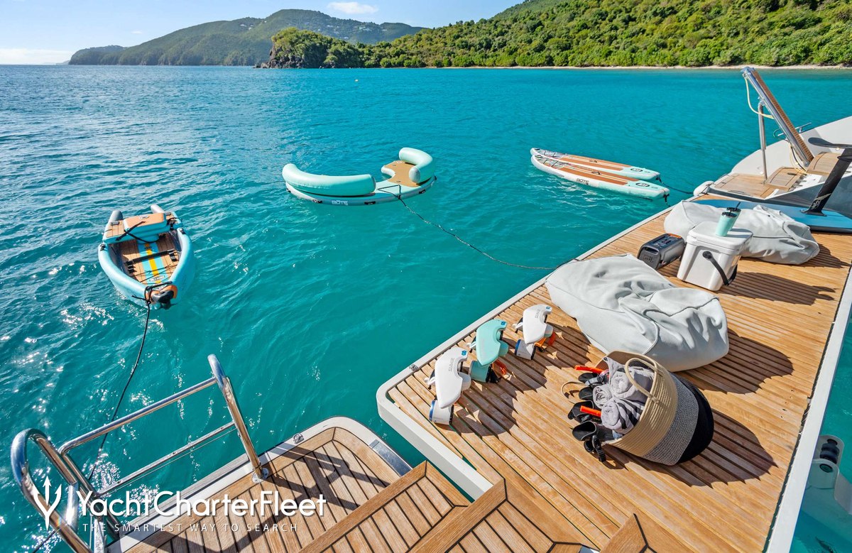 Gyrfalcon has a good selection of water toys and accessories to entertain you and your guests whilst on charter. Principle among these are towable toys offering fun and adventure. Another excellent feature are F5S 2019 SEABOBs, that allow you to skim along the surface or steer under the crystal water and experience life swimming with the fish. Additionally, there are wakeboards so guests can show off at speed. If that isn't enough Gyrfalcon also features scuba diving equipment, paddleboards and snorkelling equipment. When it's time to travel from land to see, it couldn't be easier with a ZAR Tender.