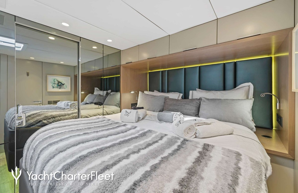 Built in 2019, Gyrfalcon offers guest accommodation for up to 10 guests in 5 suites comprising a master suite and four double cabins. There are 5 beds in total, including 5 queen. She is also capable of carrying up to 3 crew onboard to ensure a relaxed luxury yacht charter experience.