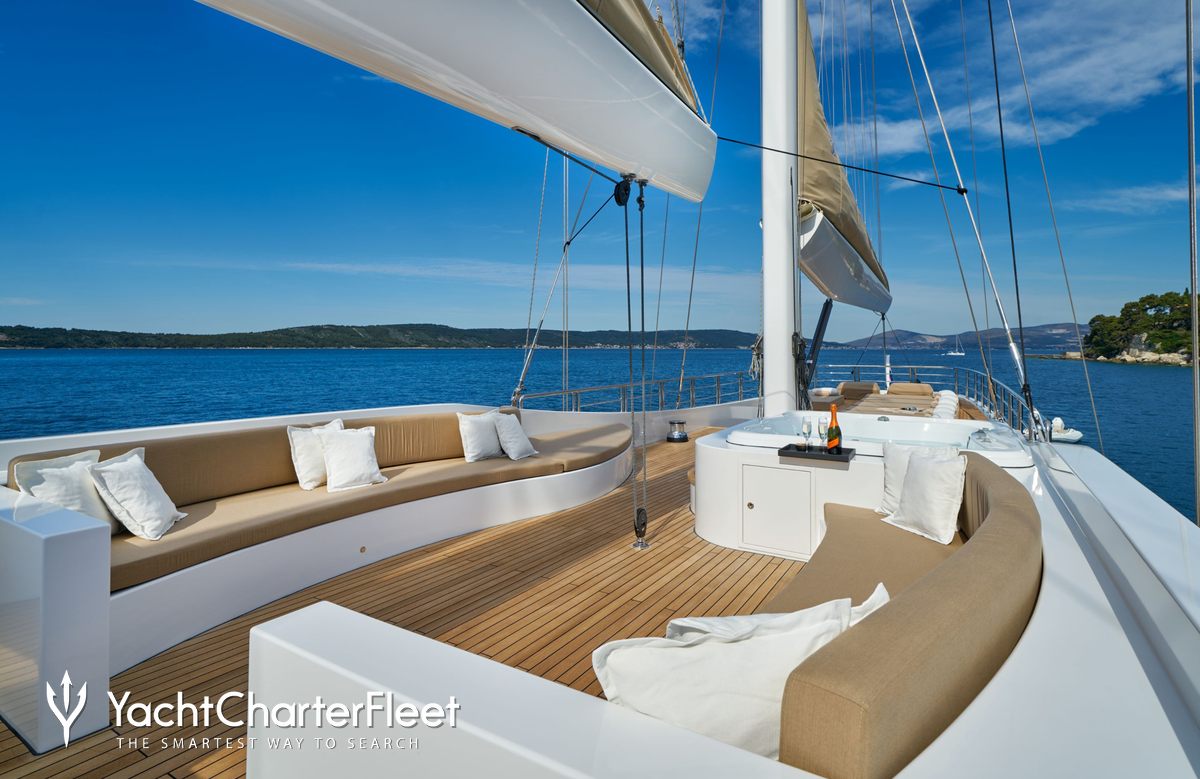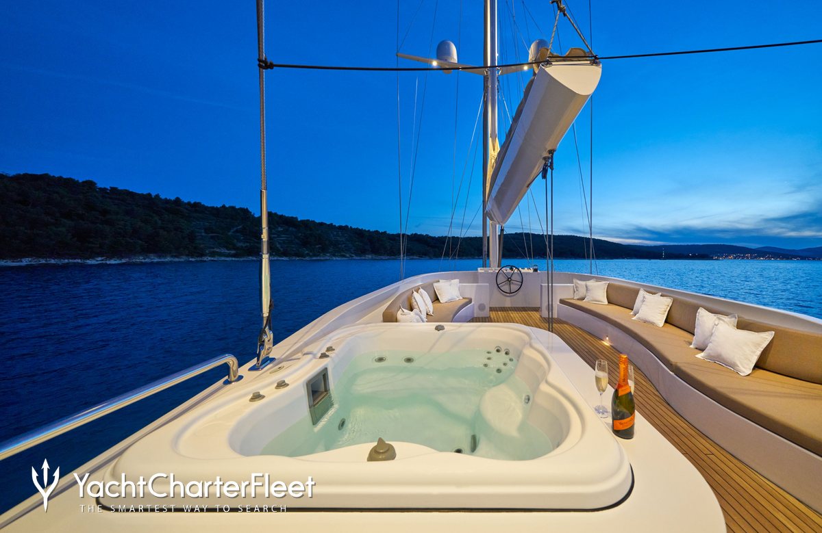 A charter on Acapella is comfortable and convenient thanks to the provided amenities such as a deck jacuzzi, perfect to enjoy the scenery with your favourite drink in hand.