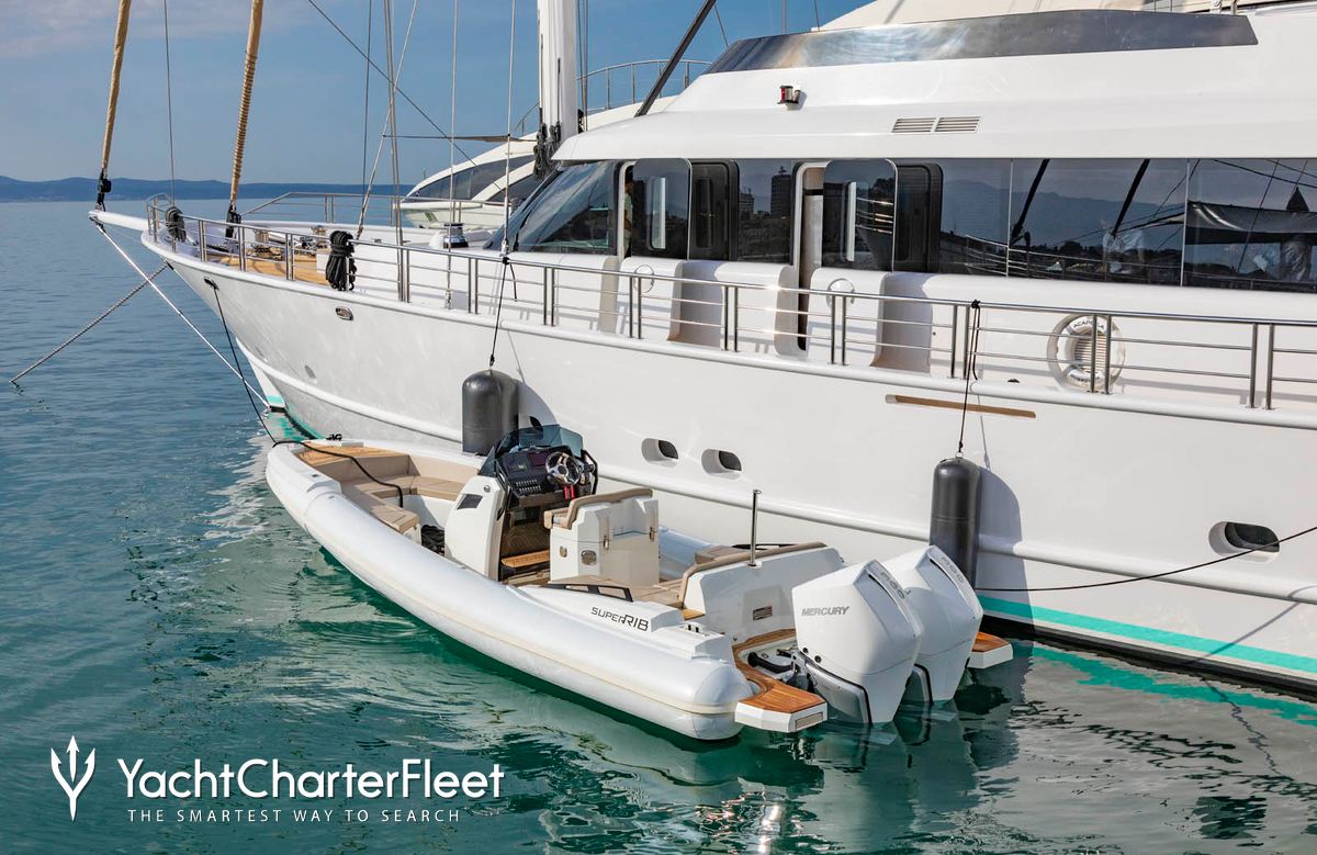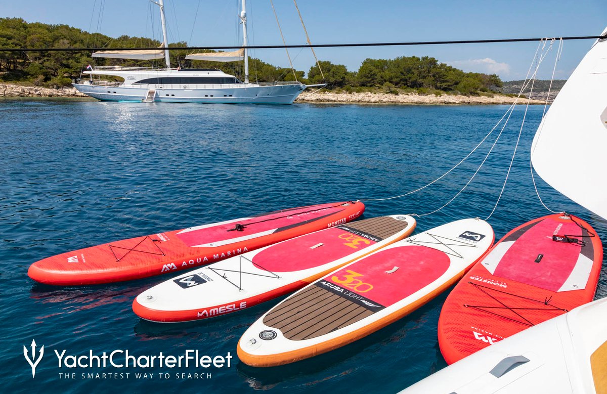 Acapella has a good selection of water toys and accessories to entertain you and your guests whilst on charter. Principle among these are towable toys offering fun and adventure. Another excellent feature are waterskis that are hugely entertaining whether you are a beginner or a seasoned pro. Also there are SEABOBs providing agile cruising and diving. If that isn't enough Acapella also features wakeboards, fishing equipment, inflatable water toys, paddleboards and snorkelling equipment. Acapella has a 11m/36'1" Tender to transfer you from ship to shore.