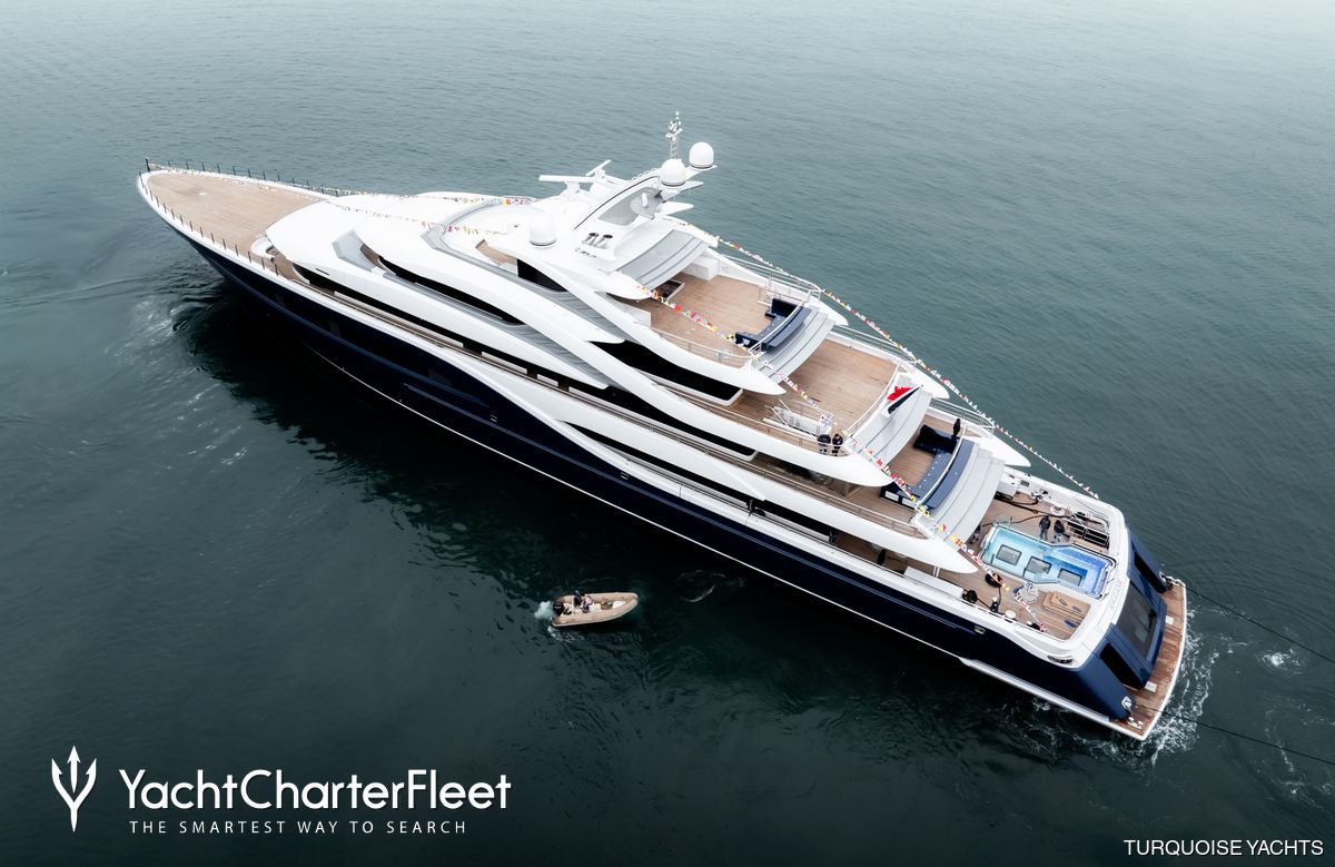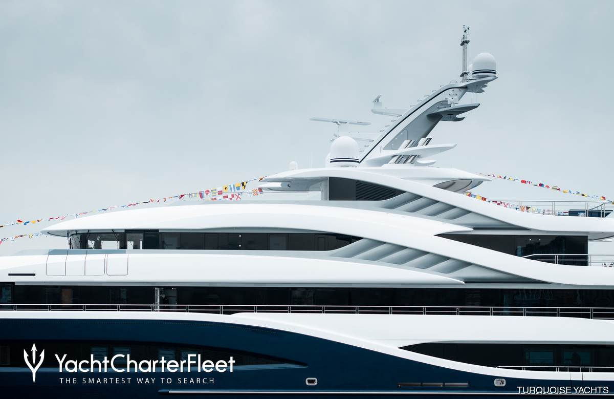 The 87.7m/287'9" motor yacht 'Angelique' offers the unmissable chance to charter a brand new superyacht, having only launched this year. Delivered by the Turkish shipyard Turquoise Yachts and featuring interior styling by English designer H2 Yacht Design she can comfortably accommodate up to 12 guests in 7 cabins.