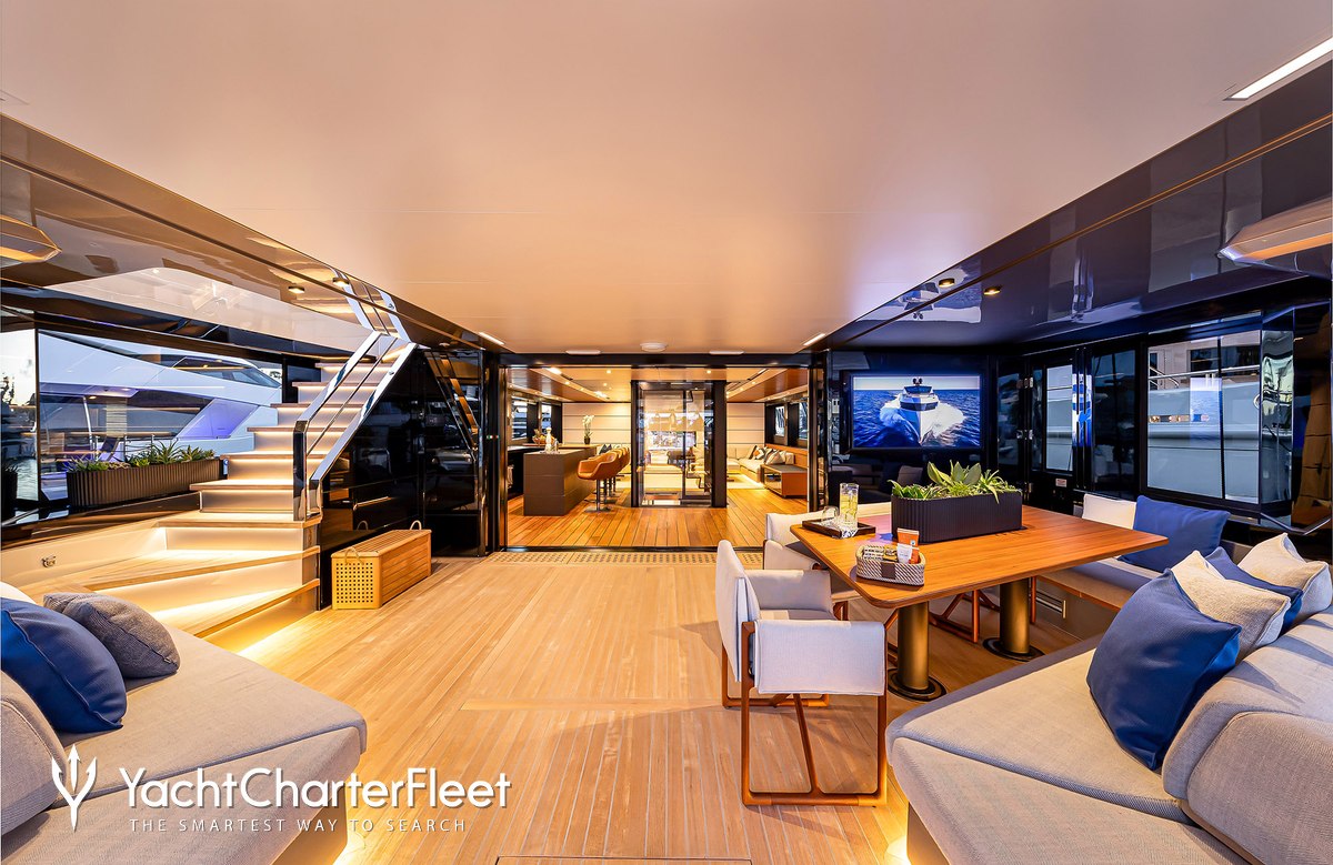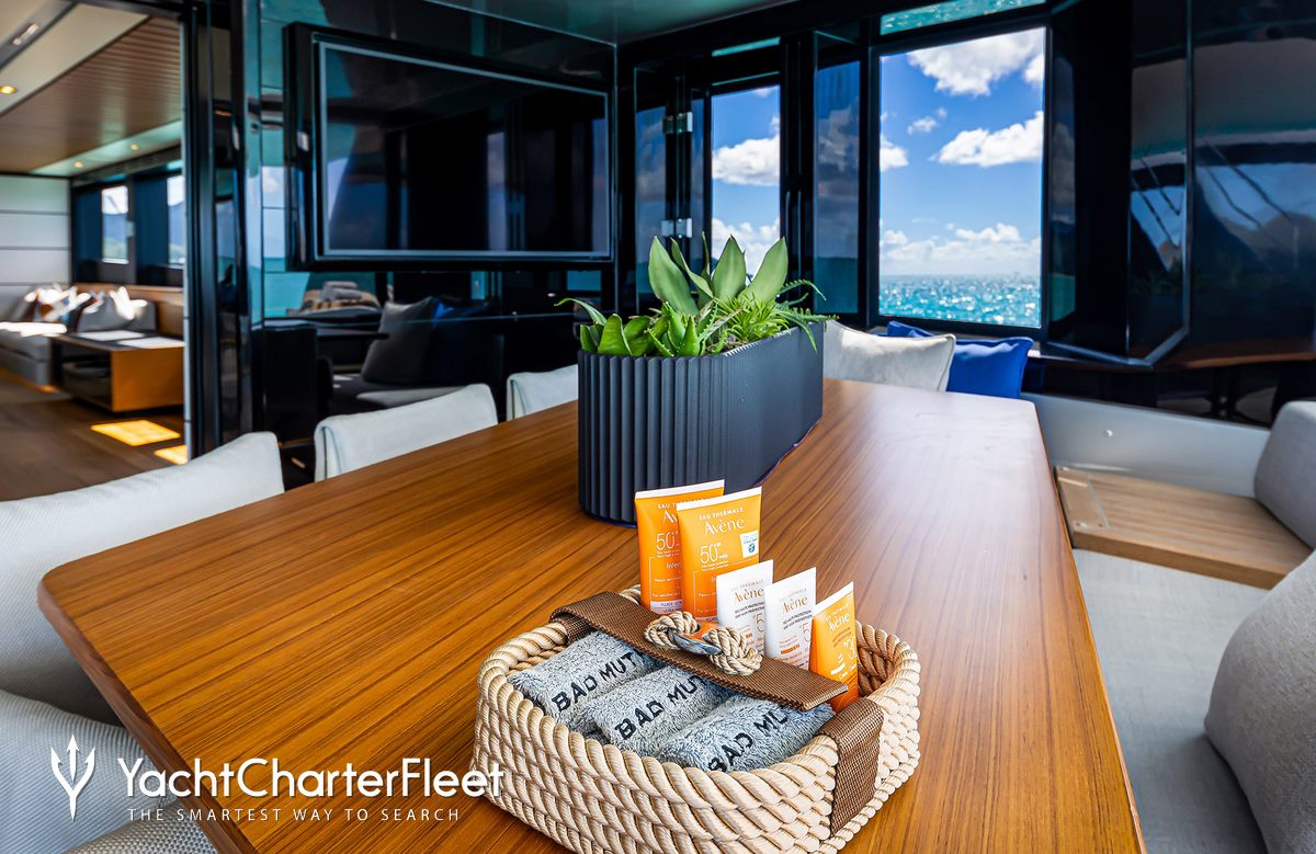 Motor yacht Bad Mutha boasts an impressive array of outstanding amenities for truly out-of-this-world charter vacations that you’ll never forget.