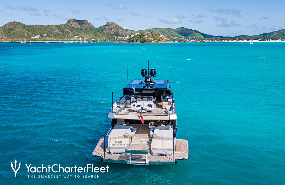 Book your next the Caribbean luxury yacht charter aboard Bad Mutha this winter. She is already accepting bookings this summer for cruising in the Mediterranean.