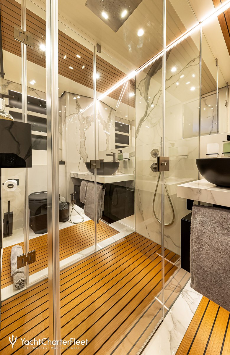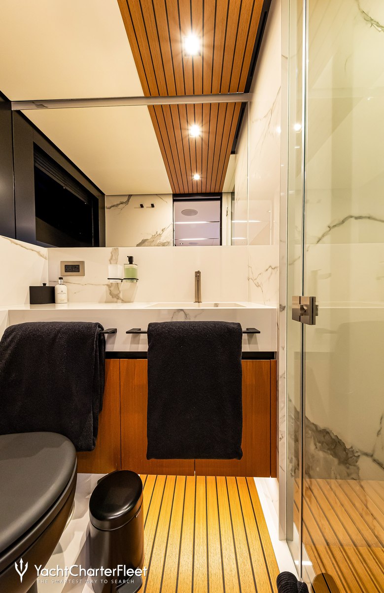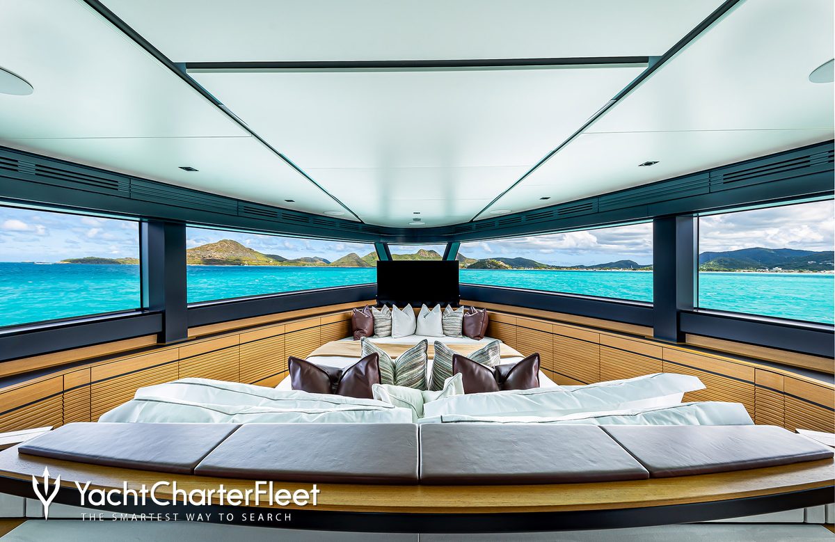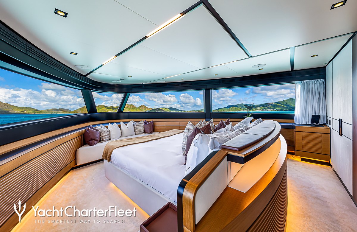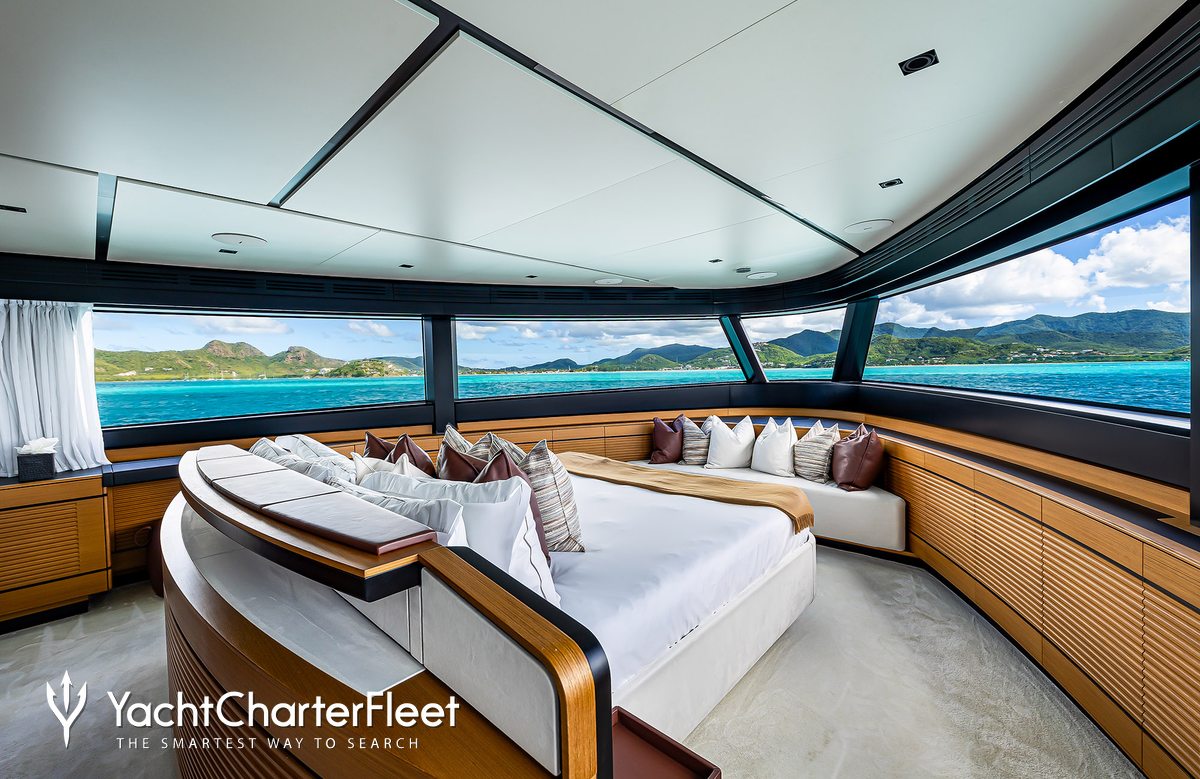 Bad Mutha offers guest accommodation for up to 8 guests in 4 suites comprising a master suite, one VIP cabin and two double cabins. There are 4 beds in total, including 2 king and 2 queen. She is also capable of carrying up to 5 crew onboard to ensure a relaxed luxury yacht charter experience.