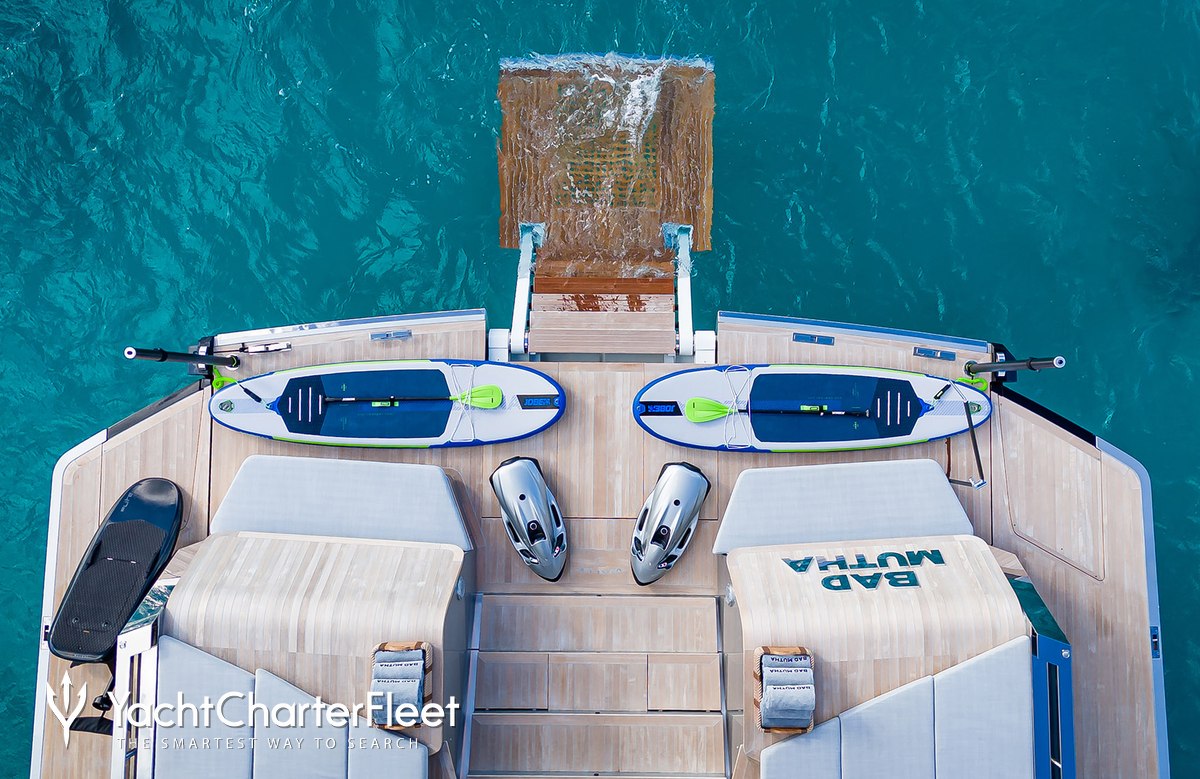 Superyacht Bad Mutha is a thrilling yacht charter vessel for those looking to cruise the open seas in large numbers in the utmost comfort
