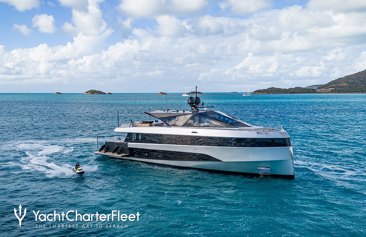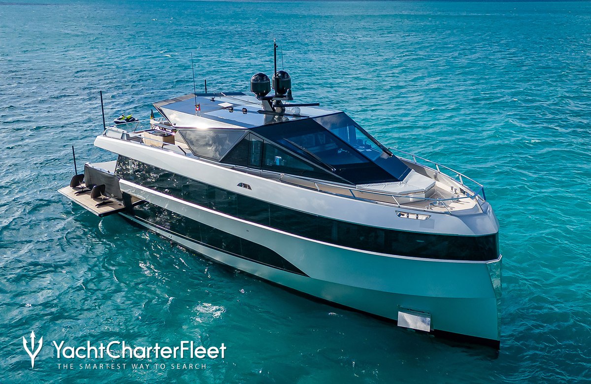The 27.03m/88'8" motor yacht 'Bad Mutha' is an excellent new superyacht for the luxury charter market. Delivered by the Italian shipyard Wally and featuring interior styling by Italian designer Vallicelli Design she can comfortably accommodate up to 8 guests in 4 cabins.