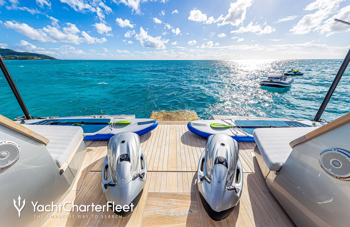 Bad Mutha knows a thing or two about fun on the water, with a selection of water toys and accessories for you and your guests to enjoy whilst on charter. Principle among these are two Flyboards, experience flying in and out of the water with the latest in high adrenaline watersport. Take to the sea on a Jet Ski offering you power and control on the water. Another excellent feature are towable toys offering fun and adventure. If that isn't enough Bad Mutha also features a seabob, wakeboards, paddleboards and surfboards. When it's time to travel from land to see, it couldn't be easier with a Williams Jet Tenders Jet Tender.