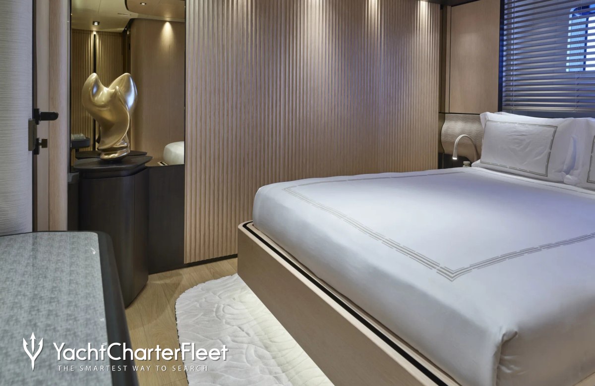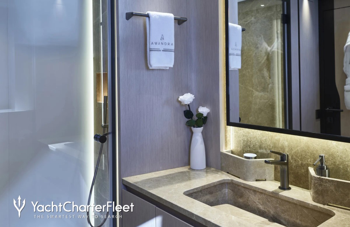 Awandra offers guest accommodation for up to 12 guests in 5 suites comprising a master suite and two VIP cabins. The bed configuration includes 2 convertible. She is also capable of carrying up to 9 crew onboard to ensure a relaxed luxury yacht charter experience.