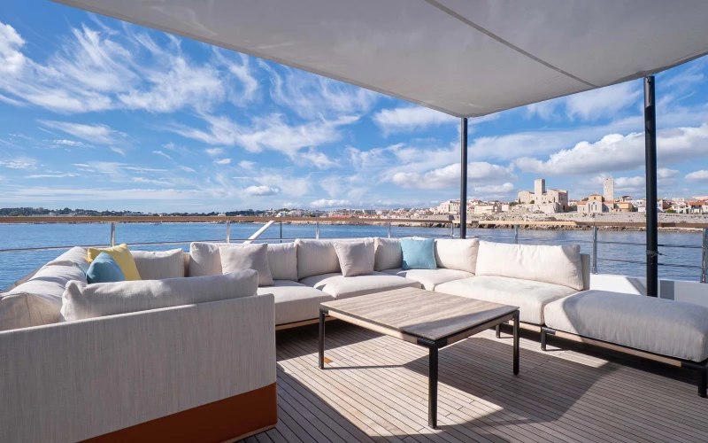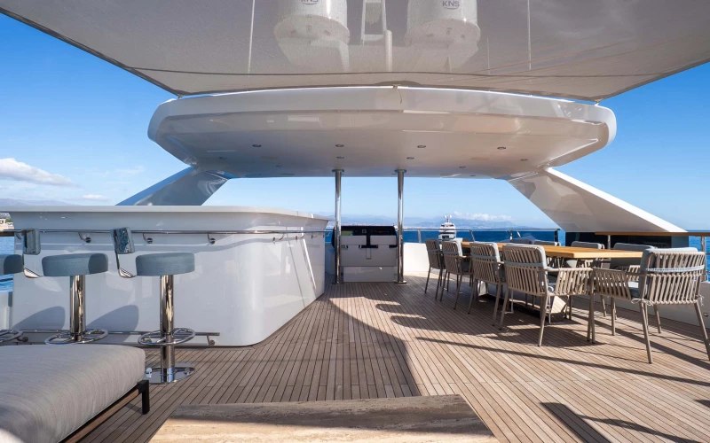 Ray is great for families thanks to her child-friendly setup. Built in 2025, She offers guest accommodation for up to 10 guests with a layout comprising a master suite located on the main deck, two VIP cabins and two twin cabins. There are 7 beds in total, including 2 king, 2 queen, 2 singles and 1 pullman. She is also capable of carrying up to 6 crew onboard to ensure a relaxed luxury yacht charter experience.