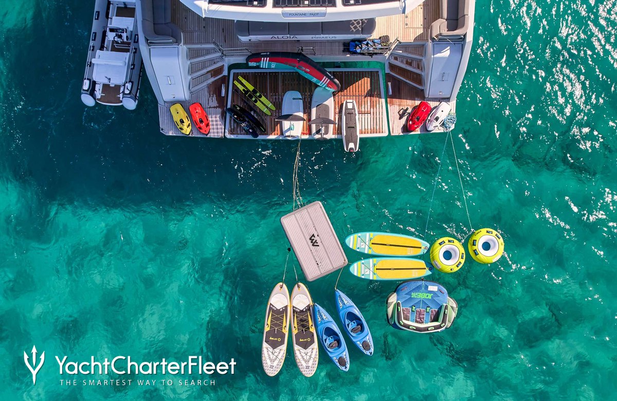 Set against the backdrop of your chosen cruising ground, you and your guests can enjoy fun on the water with the collection of water toys and accessories aboard Aloia 80. Principle among these are Flyboards, experience flying in and out of the water with the latest in high adrenaline watersport. Take to the sea on the Jet Skis offering you power and control on the water. Another excellent feature are waterskis that are hugely entertaining whether you are a beginner or a seasoned pro. If that isn't enough Aloia 80 also features a seabob, wakeboards, kayaks, paddleboards and snorkelling equipment.