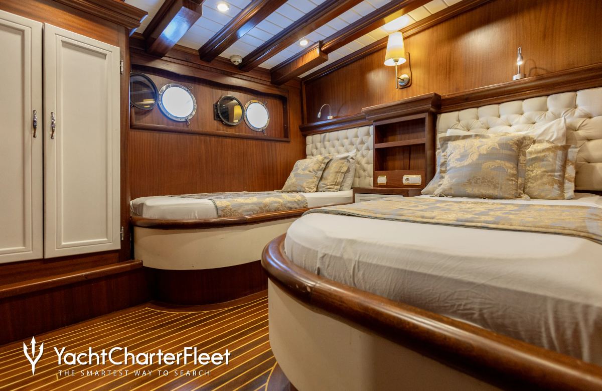 The 34m/111'7" gulet yacht 'Oxyzen' by Atlas Shipyard offers flexible accommodation for up to 18 guests in 8 cabins.