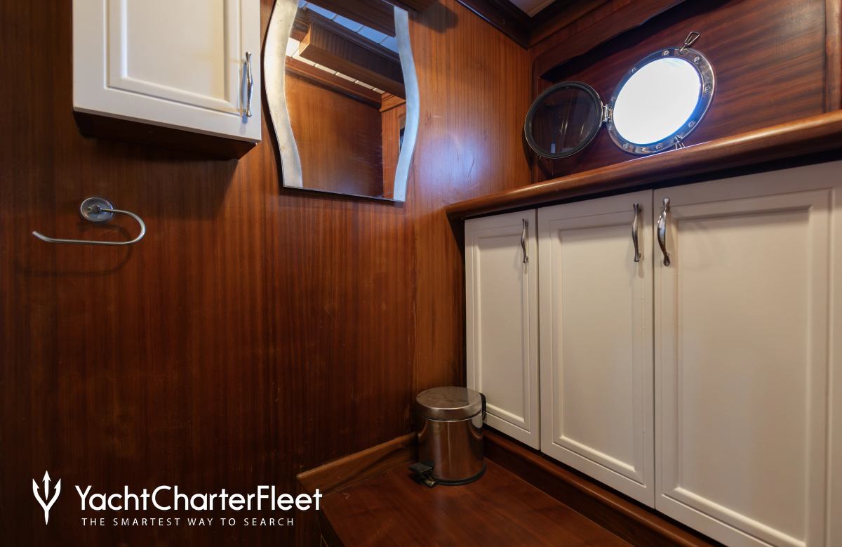 Oxyzen is notable for her eight cabin layout, offering great flexibility for a charter yacht of this size. Built in 2007, She offers guest accommodation for up to 18 guests with a layout comprising two VIP cabins, two double cabins and two twin cabins. She is also capable of carrying up to 6 crew onboard to ensure a relaxed luxury yacht charter experience.