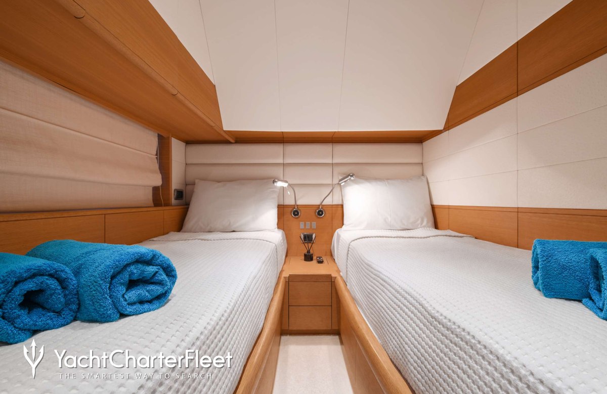 BlueWave offers guest accommodation for up to 8 guests in 4 suites comprising two double cabins and two twin cabins. There are 6 beds in total, including 2 queen and 4 singles. She is also capable of carrying up to 3 crew onboard to ensure a relaxed luxury yacht charter experience.