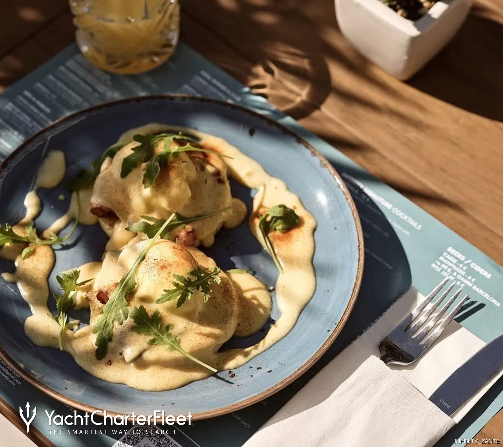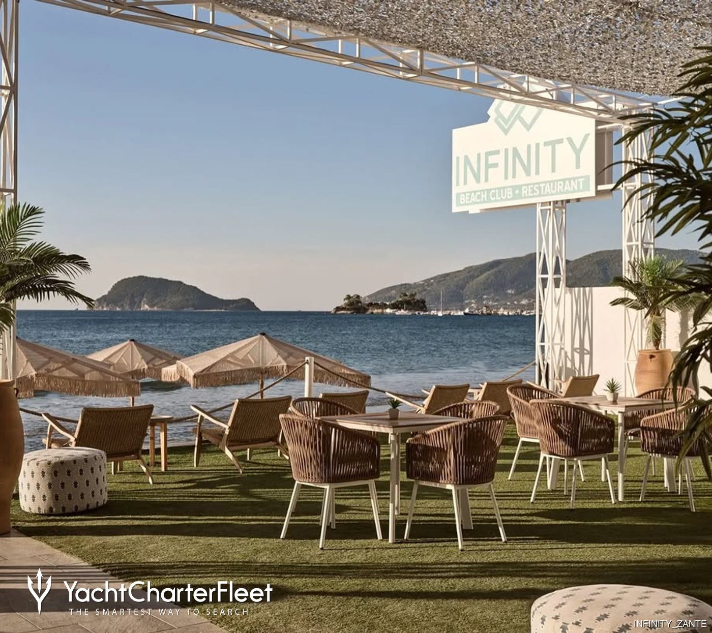 With its modern yet minimalistic decor, the setting is both inviting and sophisticated, making it ideal for capturing stunning photos. From lounging under the warm Greek sun to enjoying the soft glow of evening lights, the atmosphere remains vibrant and welcoming. For those exploring the Ionian islands on a Zakynthos yacht charter, the club serves as a premier shore-side destination to complement a day on the water.